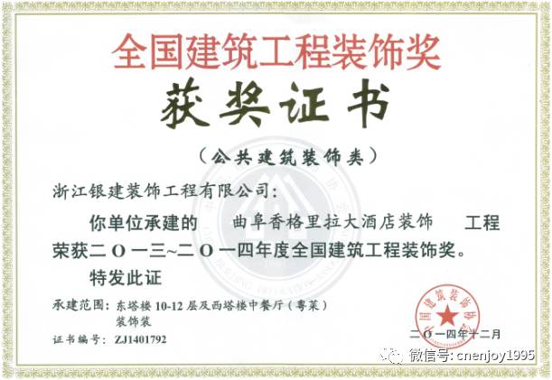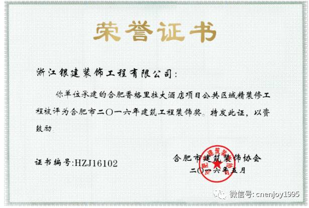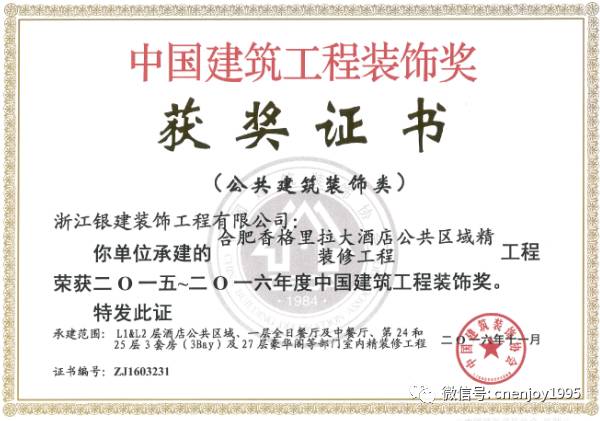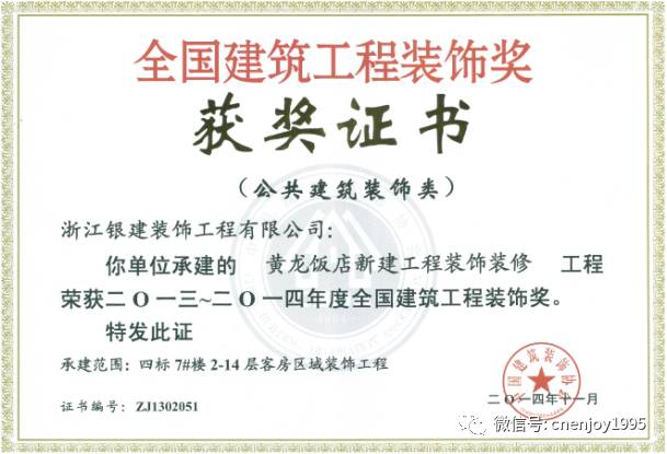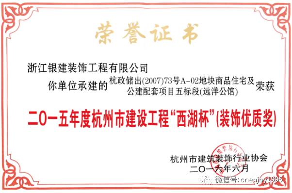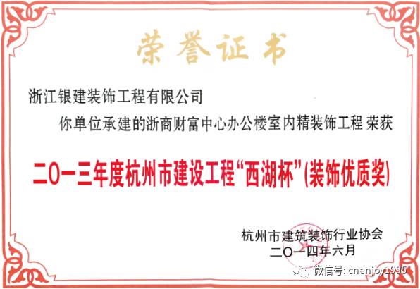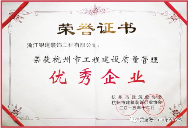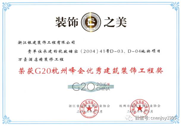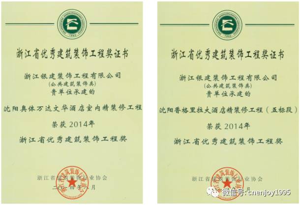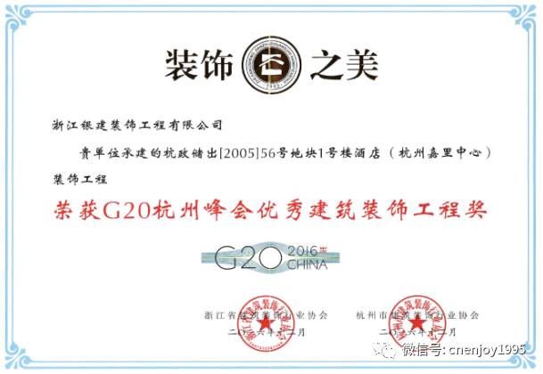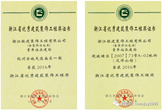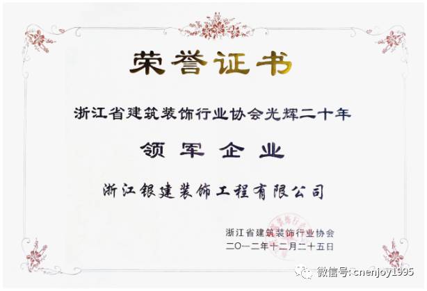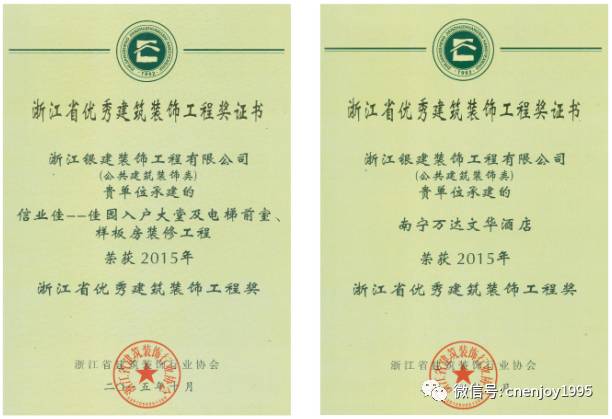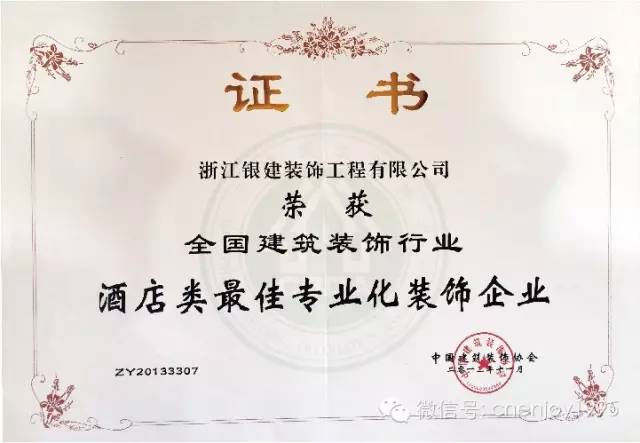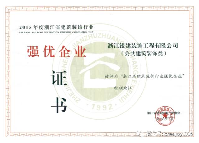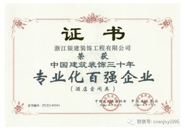 浙江銀建裝飾工程有限公司成立于1995年,立足于浙江,面向全國,已在北京、上海、青島、太原、海南、沈陽、銀川、重慶等設(shè)有分公司。是一家從事建筑裝飾裝修工程設(shè)計(jì)與施工一體化企業(yè)。經(jīng)過二十一年的不懈努力和發(fā)展,浙江銀建憑借一流的人才、一流的質(zhì)量和一流的信譽(yù)。獲得了國內(nèi)外知名品牌房地產(chǎn)開發(fā)商的信賴和支持。連續(xù)多年獲得全國建筑裝飾行業(yè);百強(qiáng)企業(yè)、全國建筑裝飾行業(yè);酒店類最佳專業(yè)化裝飾企業(yè)。