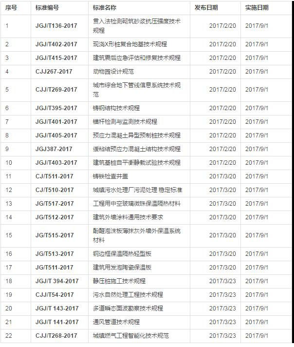 2017年9月開始實(shí)施的工程建設(shè)標(biāo)準(zhǔn)