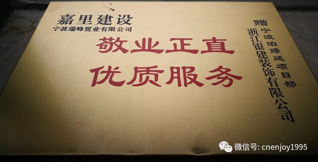 2018年1月,我司“寧波泊景庭”項(xiàng)目部收到嘉里建設(shè)-寧波瑞峰置業(yè)有限公司頒發(fā)的獎(jiǎng)牌。“敬業(yè)正直、優(yōu)質(zhì)服務(wù)”是業(yè)主對(duì)項(xiàng)目部高度的認(rèn)可。