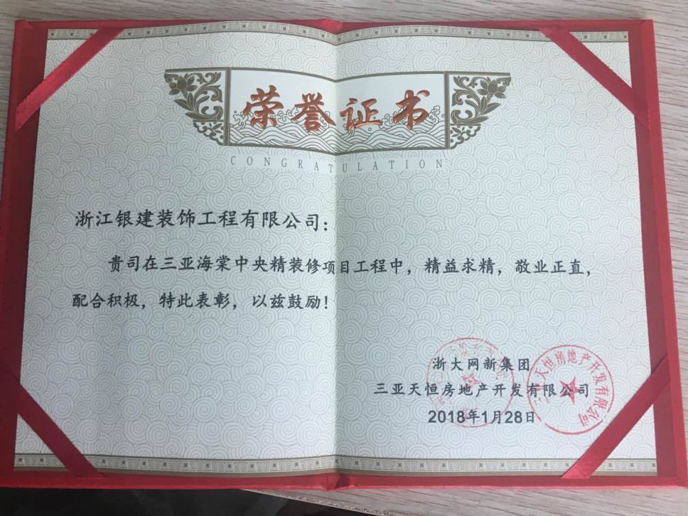 2018年新年伊始,我司海棠中央項目部收到浙大網(wǎng)新集團頒發(fā)的新年賀章!“精益求精、敬業(yè)正直”配合積極是業(yè)主單位對項目部的高度評價。