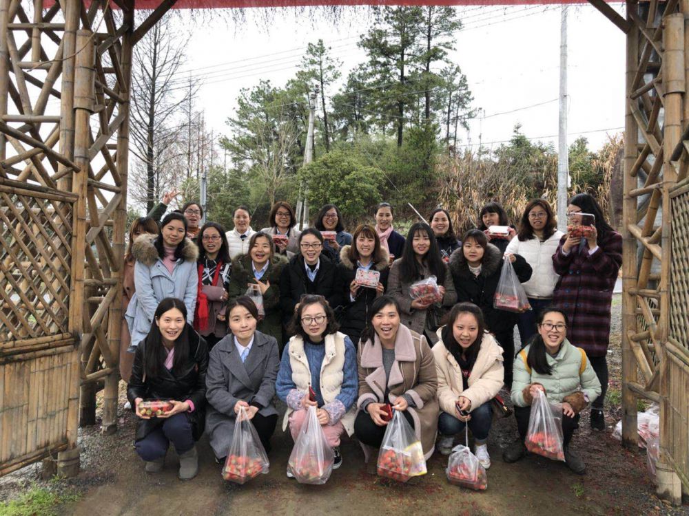 爾后,大家動(dòng)身前往附近的草莓基地。一排排整齊的草莓 大棚現(xiàn)在眼前,大家呼吸著田園的氣息,享受著早春的樂趣。大棚里的草莓壓彎了枝頭,綠油油的草莓地里,點(diǎn)綴著紅綠相間的草莓果,像是一顆顆玫瑰花蕊。大家 與自己的勞動(dòng)成果在田間拍照合影,隨著鏡頭一閃,留住了這緊張工作之余的輕松時(shí)刻。