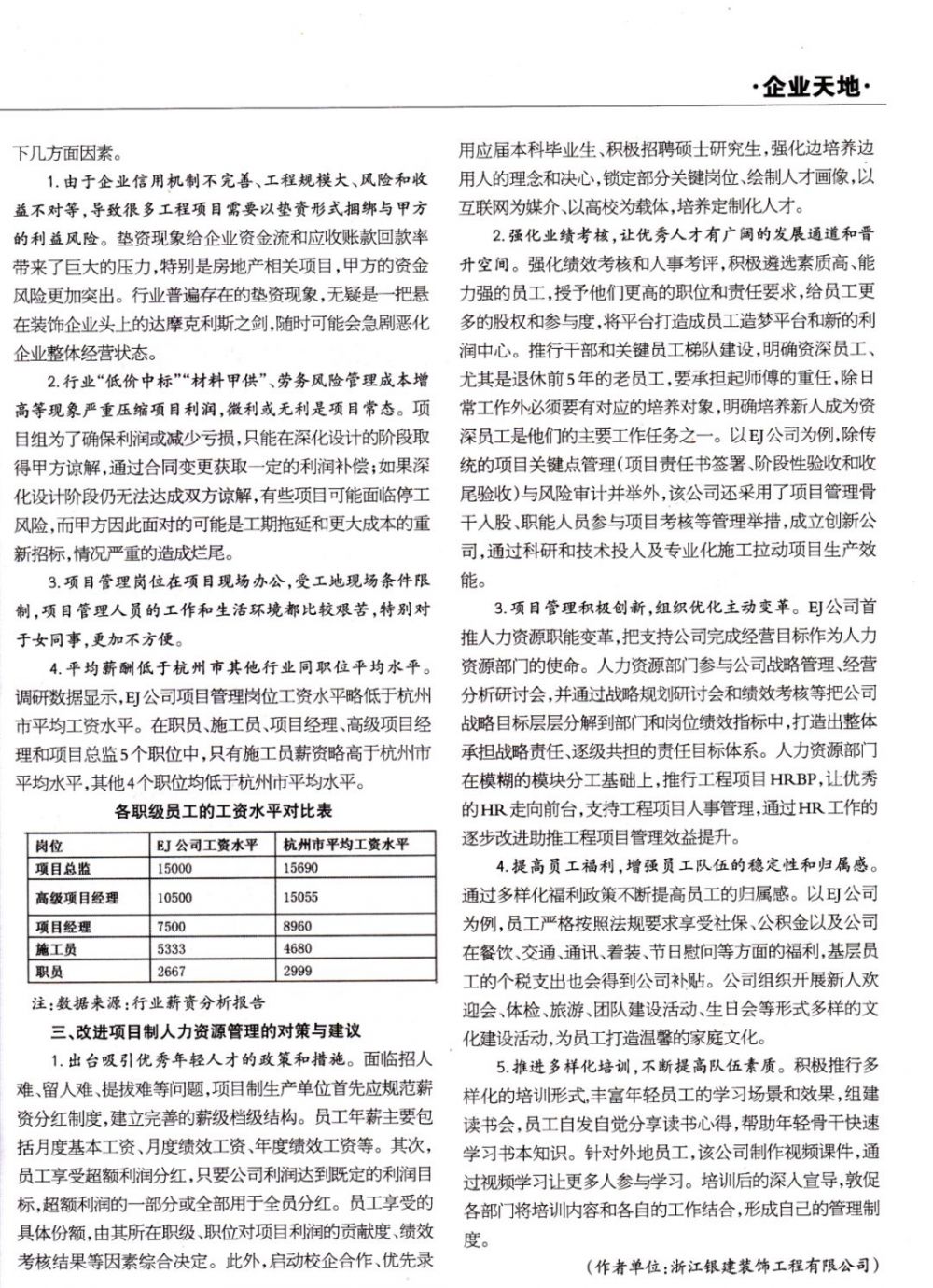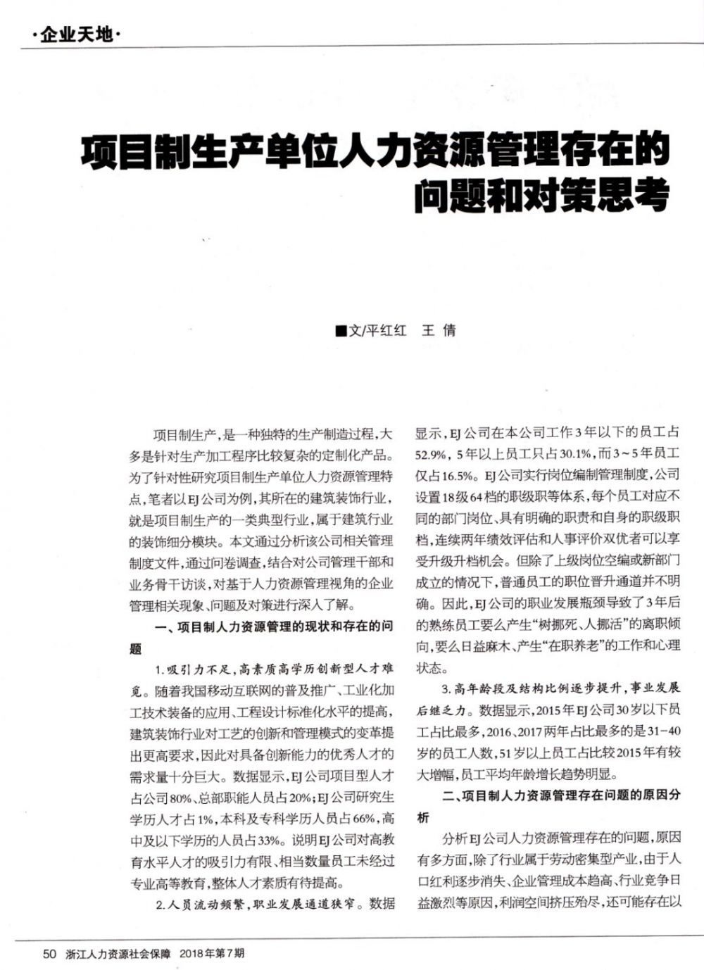 2018年8月1日,由銀 建公司人力資源部平紅紅、王倩撰寫的《項(xiàng)目制生產(chǎn)單位人力資源管理存在的問題和對(duì)策思考》一文,正式被浙江省級(jí)雜志——《浙江人力資源社會(huì)保障》錄用并刊 發(fā)。希望公司各部門在工作提升之余,積極參與理論研究、將銀建公司的管理理念和生產(chǎn)實(shí)力推向社會(huì)、提升企業(yè)知名度和美譽(yù)度。
