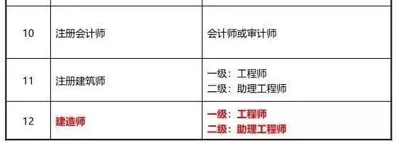 1、取得一級建造師、一級注冊結(jié)構(gòu)工程師、一級建筑師資格的人員,可聘任工程師職務(wù);取得二級建造師、二級注冊結(jié)構(gòu)工程師、二級建筑師資格的人員,可聘任技術(shù)員或助理工程師職務(wù)。