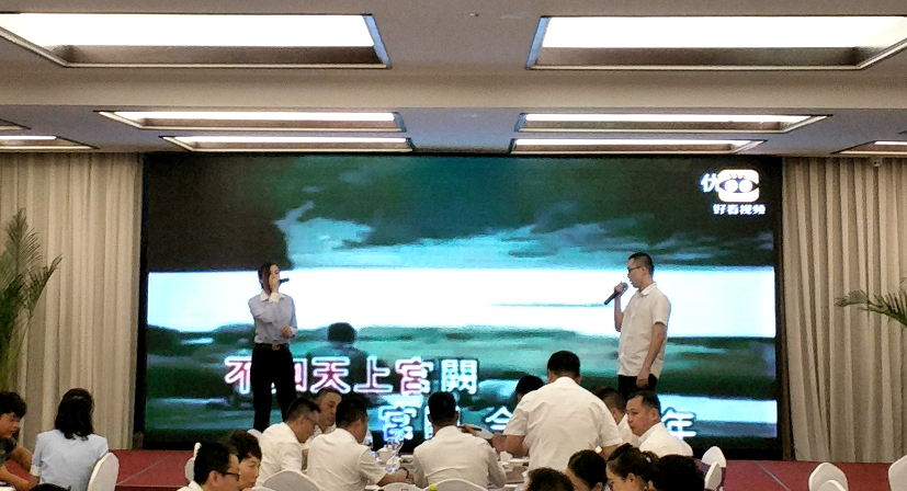 “花前月下影成雙,月映窗臺(tái)花涌香。”首先由成本部王加真和經(jīng)營(yíng)部吳慧萍演唱了一曲《花好月圓夜》,表達(dá)了有情人對(duì)美好情感的寄愿。