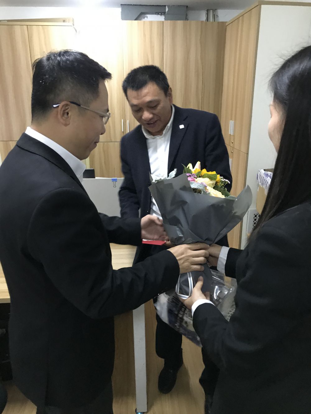 我們的到來讓陳師傅感到非常驚喜,梁總代表公司送上了生日賀卡、鮮花及蛋糕。
