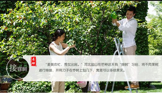 芒種是農(nóng)忙季節(jié),在山西榮河開始收獲大、小麥,當(dāng)?shù)厝朔Q之為“農(nóng)忙”。有諺語說:“麥黃農(nóng)忙,秀女出房。”因此在此節(jié)氣,婦女也要下地幫助度過“農(nóng)忙”。而在河北鹽山則是在“忙中”這天有“嫁樹”的習(xí)俗。就是用刀子在棗樹上劃幾下,寓意可以多結(jié)果實(shí)。