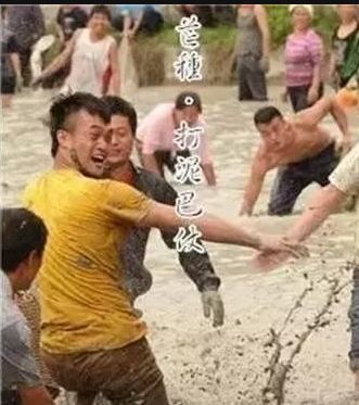 貴州東南部一帶的侗族青年男女,每年芒種前后都要舉辦打泥巴仗節(jié)。當(dāng)天,新婚夫婦由要好的男女青年陪同,集體插秧,邊插秧邊打鬧,互扔泥巴?;顒咏Y(jié)束,檢查戰(zhàn)果,身上泥巴最多的,就是最受歡迎的人。