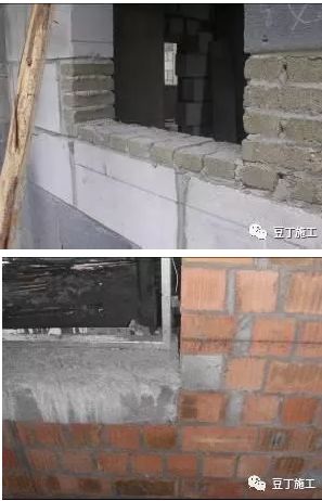 標(biāo)準(zhǔn)做法:必須設(shè)置澆筑窗臺(tái)壓頂,且伸入兩側(cè)墻體200mm。