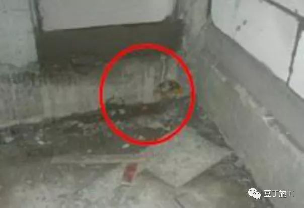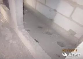 5、未澆筑窗臺(tái)壓頂,且窗臺(tái)壓頂未伸入窗側(cè)墻體,后期窗臺(tái)兩側(cè)易產(chǎn)生八字形裂縫,引發(fā)滲漏現(xiàn)象。