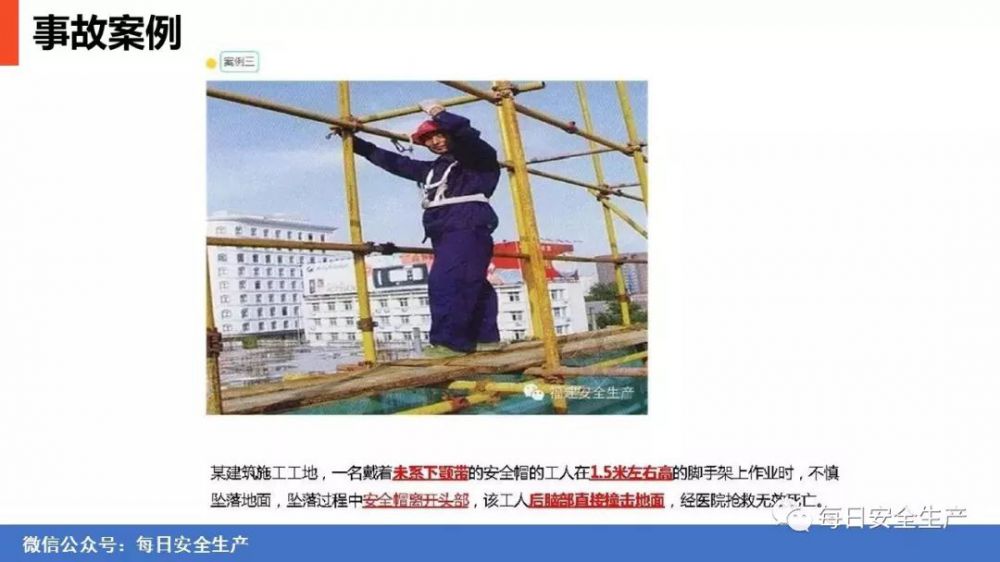 ?多起死亡事故中,受害人戴了安全帽,但還是被物體打擊或頭部撞擊地面致死。究其原因,竟然是沒有系下顎帶造成的。