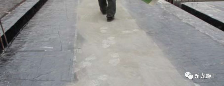 d.為了防止卷材粘腳,可在卷材面上撒水或水泥干粉作隔離措施。