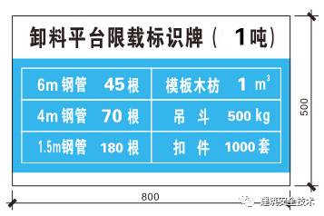 (9)卸料平臺應(yīng)掛設(shè)限載標志牌,嚴禁超載。平臺前段可設(shè)置長度不小于1m的外挑部分,并掛設(shè)安全兜網(wǎng),以轉(zhuǎn)運較長鋼管。