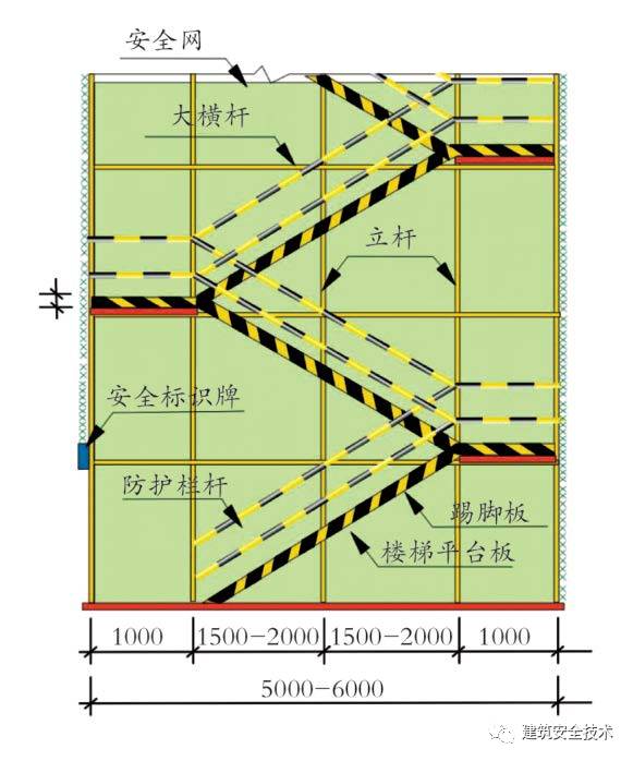 (4)斜道宜附著外腳手架或建筑物設(shè)置,其各立面應(yīng)設(shè)置剪刀撐,斜道外側(cè)掛密目安全網(wǎng)封閉。
