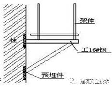 (1)型鋼梁的固定:型鋼梁與主體混凝土結(jié)構(gòu)的固定可采用預(yù)埋螺栓固定、鋼筋拉環(huán)錨固,不得采用扣件連接。