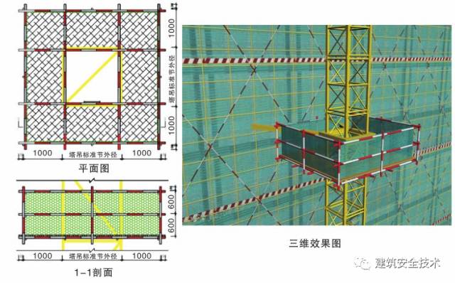(1)塔吊在附墻部位必須搭設(shè)附墻用操作平臺,平臺的面積應(yīng)能滿足使用要求,采用鋼管搭設(shè)或定型化操作平臺。