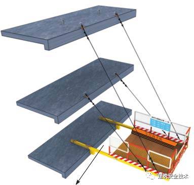 此處為腳手架空檔,使用時應(yīng)張掛安全平網(wǎng),并于平網(wǎng)上部鋪設(shè)專用防滑腳手板,隨樓層周轉(zhuǎn)使用。