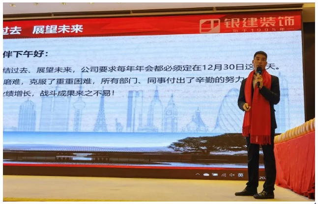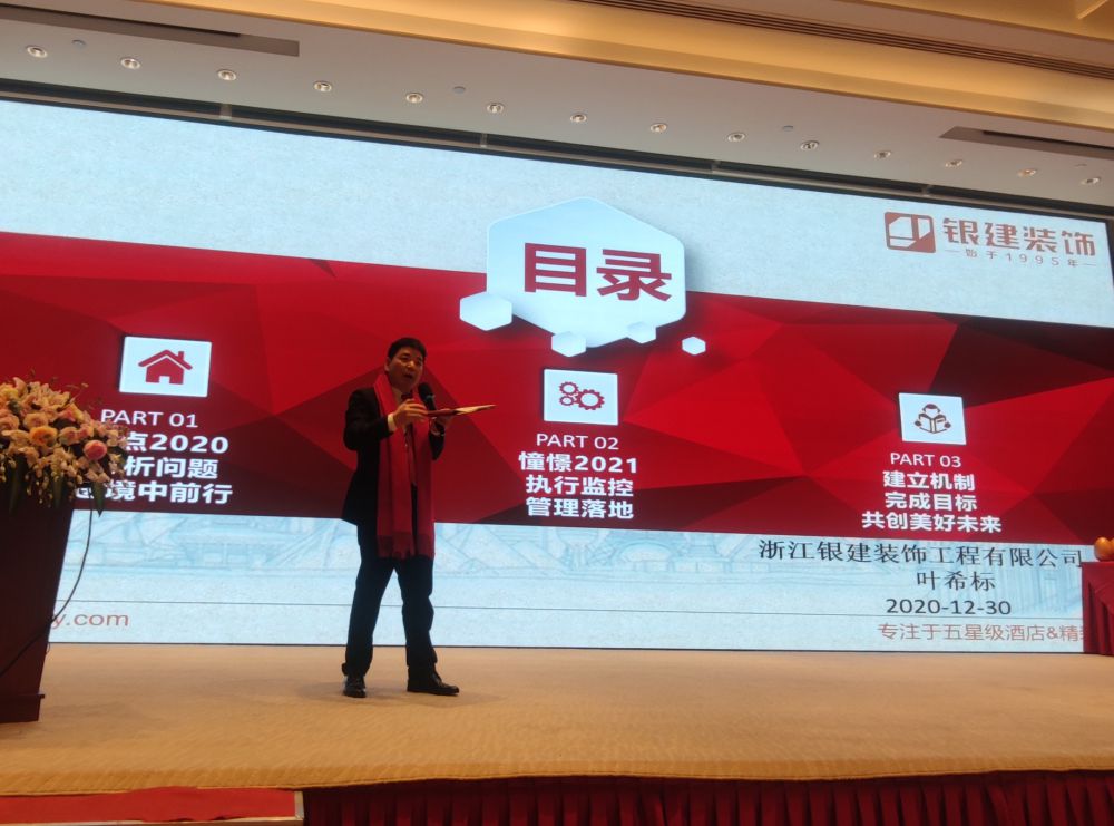 律回春暉漸,萬象始更新。2020年12月30日,浙江銀建裝飾工程有限公司2020年年終工作總結(jié)會在杭州星都賓館《星都廳》拉開帷幕??偣舅腥藛T以及分公司、項目部代表人員齊聚一堂,總結(jié)過去一年取得的成績,謀劃新一年的發(fā)展方向。