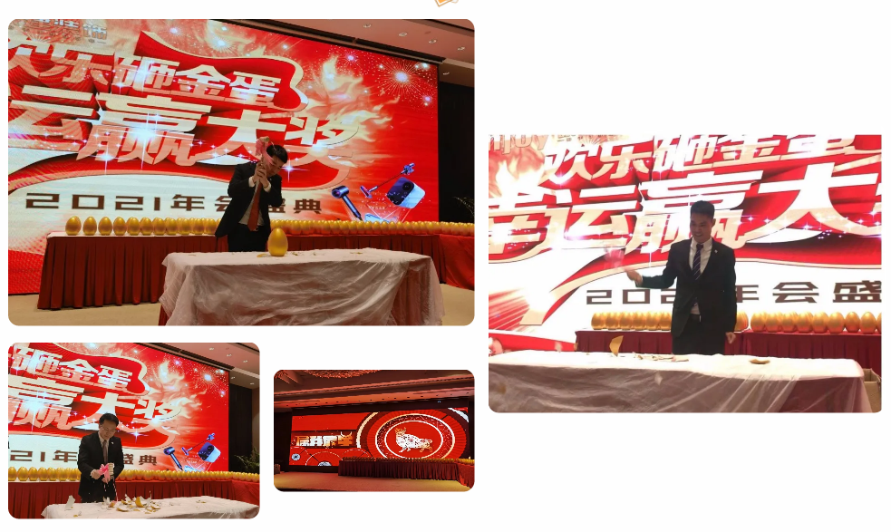除節(jié)目演出外,晚宴還設(shè)置了激動人心的砸金蛋環(huán)節(jié),首先由葉友希董事長砸出晚宴的第一個獎項,在一批批大獎揭曉后,隨著當晚最大獎項浮出水面后晚宴被迅速推入了高潮。在大家的陣陣歡呼聲中,今晚,我們告別了2020,收獲了喜悅,也希望所有銀建人不忘初心、壓力下砥礪前行,走出一條逆勢奮進的發(fā)展之路。
