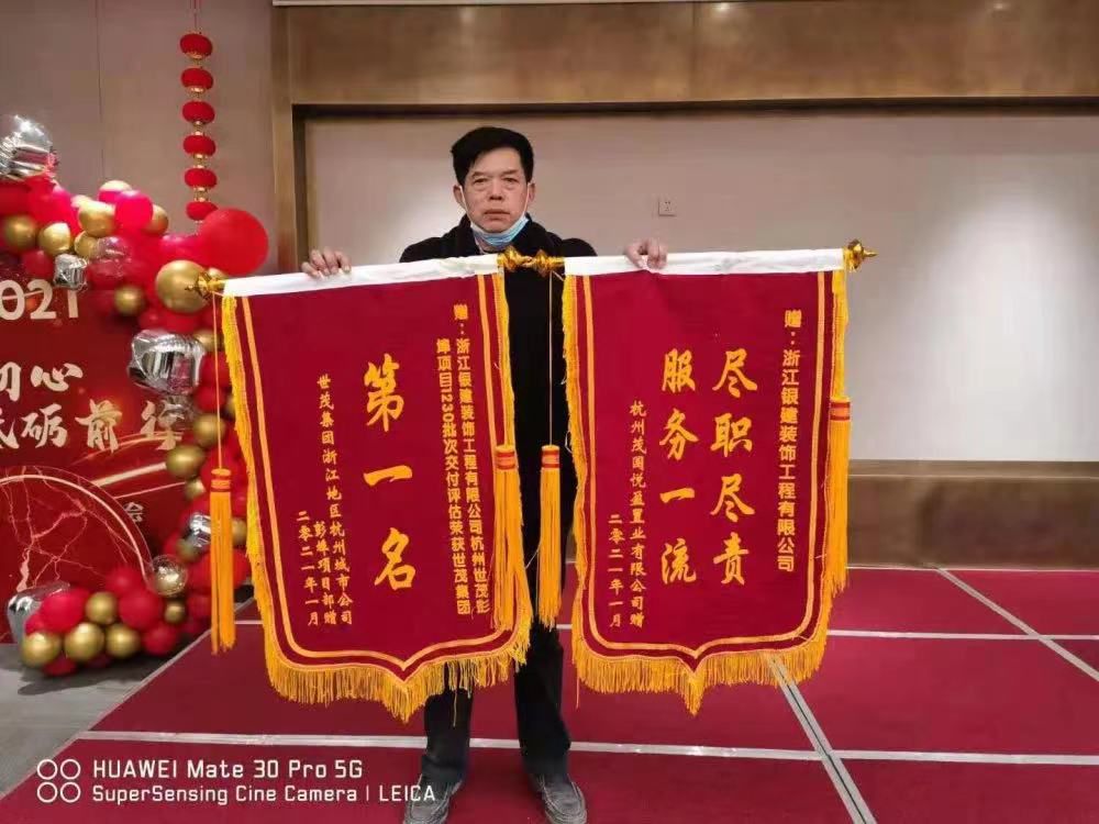2021年1月20日對銀建人來說是一個值得可喜的日子,在世貿二批次交付評估世貿集團第一名的成績下,今日正式進行了頒獎儀式,由甲方送來了兩面寫有“第一名”“盡職盡責 服務一流”的錦旗和“優(yōu)秀項目經理”的獎杯!